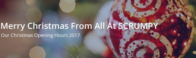 Over the festive period please send any emails for emergency purposes to help@scrumpy.co.uk - these will be monitored over the break. Our opening hours are as follows: